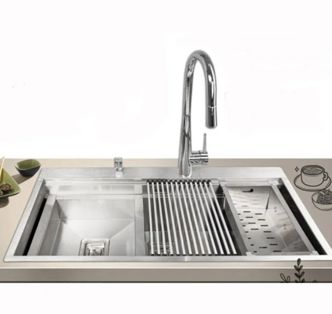 سینک توکار اخوان مدل 355 از انواع سینک توکار محسوب میشود و در دسته سینکهای لگن بزرگ قرار میگیرد. نمای سینک استیل خشدار به ضخامت یک میلی متر شده است. ابعاد سینک ۵۲*۱05 سانتیمتر است. این سینک از انواع عمیق به شمار میرود. سینک توکار اخوان مدل 355 دارای یک لگن بزرگ با عمق 25 سانتی متر است که به همراه آبچکان نواری آلومینیومی،سبد میوه شور استیل،لگن استیل متحرک مجهز به راه آب کنترل داخل لگن و جا مایع تحویل مشتریان عزیز می گردد