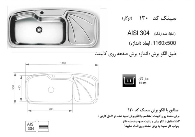 سینک اخوان مدل 130 توکار 116*50: رقص زیبایی و کارایی در قلب آشپزخانه شما